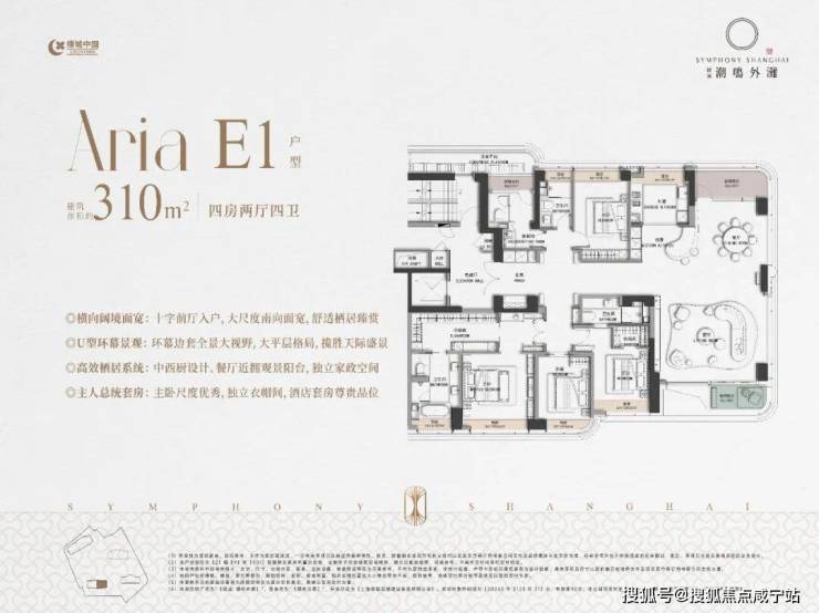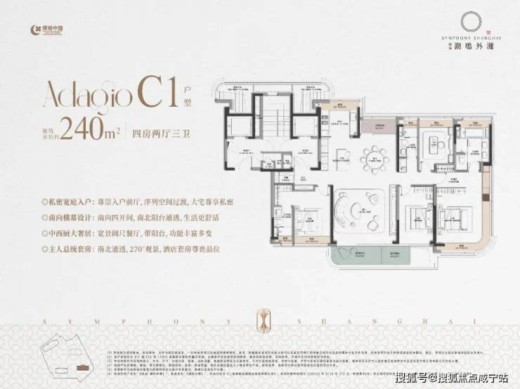 户型建面约190-310㎡,主打四居设计,定位顶豪藏品级住宅