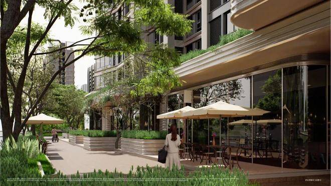 值得一提的是,中环麓岛还通过道路退界、柔性边界等手法消融内外界限,创造性打造约1.5公里生息街道,将生活街区升级为串联商业、公园与居住的立体街区。