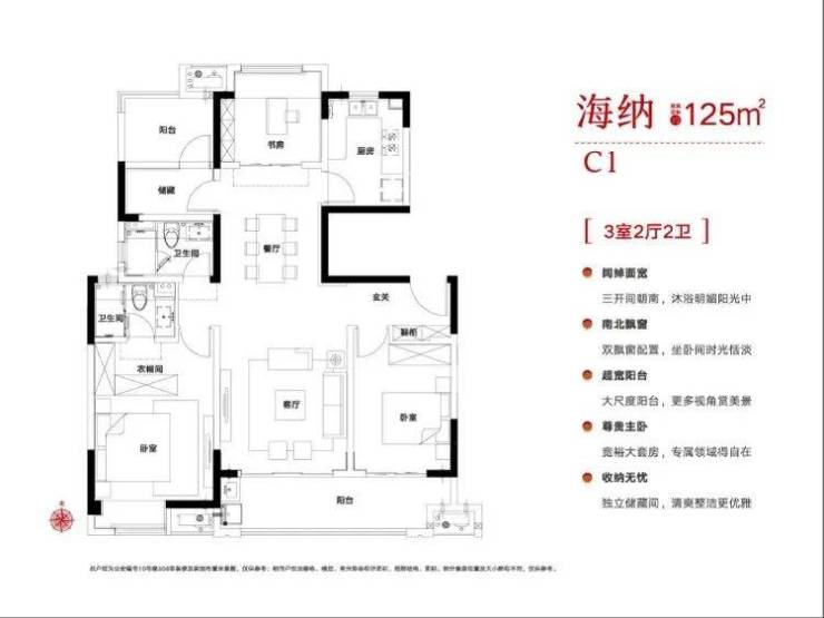 建面125㎡3+1室两厅两卫,总价约为230万左右