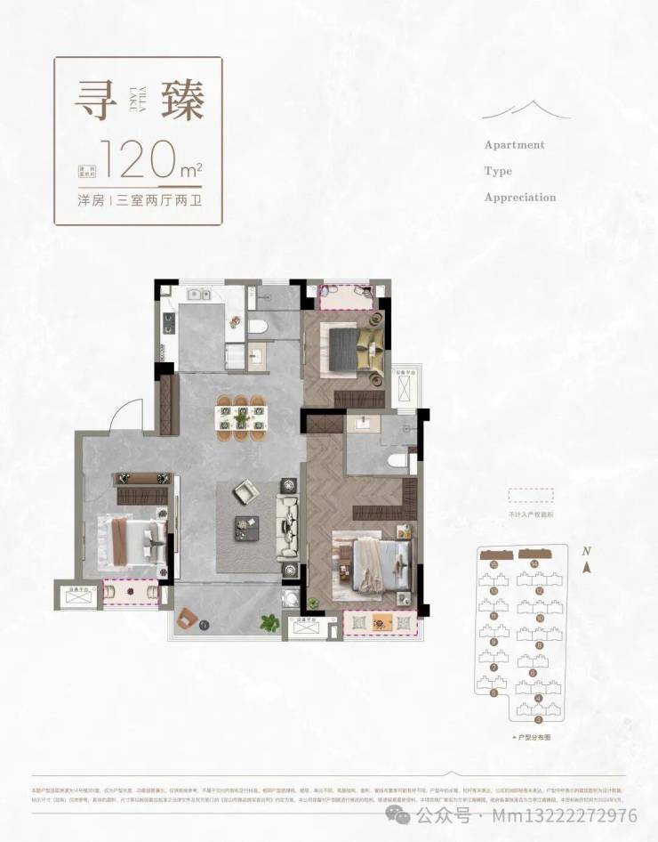 【楼栋分布】(14#15#)洋房建面:120平,三房两厅两卫
