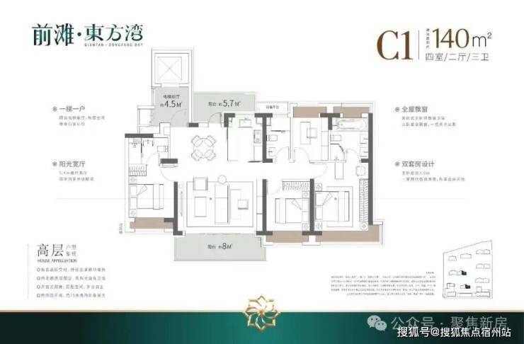 ◆户型分布:建面约103㎡-120㎡-140㎡-175㎡3-4房