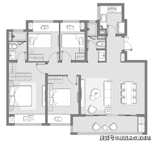 平层户型是小面积里最常见的户型,适合普通家庭居住。是指一套房屋的厅、卧、卫、厨等所有房间均处于同一层面上。