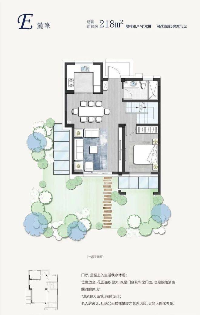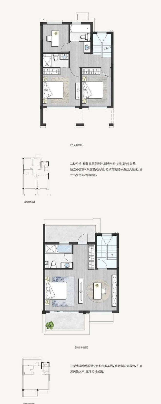 临澜墅别墅组团,14幢双拼、46幢联排,依太湖而立,区域内仅有别墅产品,稀缺性肉眼可见,价值不言自明。