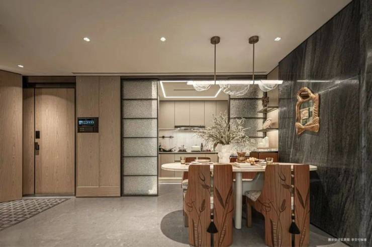 私家电梯厅有附赠空间,嘉格纳厨电五件套,大面积木饰面装饰,光是这三样就已经是市面上的顶配规格了!