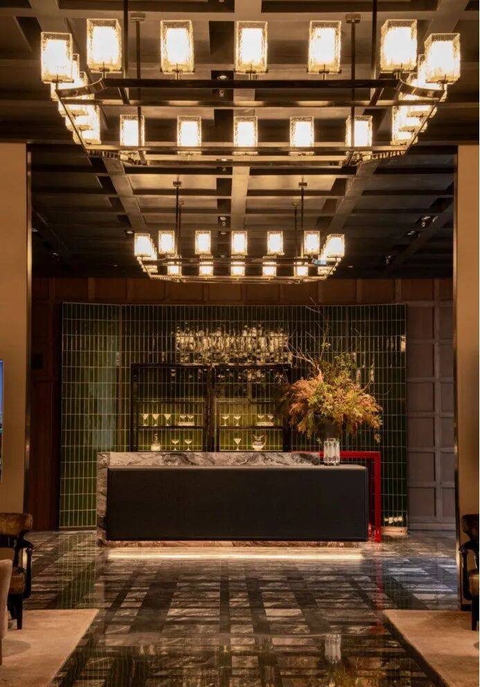 又如拾玖间地下会所水吧背景墙的景德镇冰裂瓷,近千度窑火烧制,诉说时间的答案;会所中大量软包皮革,采用雕花皮革纹,道道工序,样样精心,结合当代摩登美学,营造值得经久回味的本色。