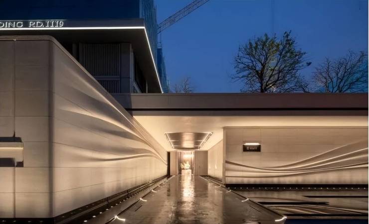 示范区大量运用数十种原石打造,例如社区入口处揉石成缎的葡萄牙沙漠风哑光面石墙,采用了十几道复杂工序,水刀雕刻、高精抛光仅是前奏,喷砂、浮雕与镶嵌等高难技艺亦是中段,最终展现完美的光泽与细腻触感,形状上还原风的褶皱,展现独家的质感和归家仪式感。