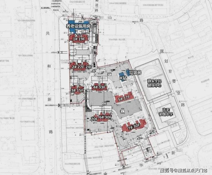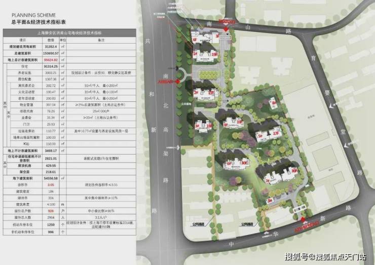 而北侧靠近南山路一侧还规划一幢最高6层的养老设施用房.在小区南北两侧的中华新路和南山路分别设有机动车出入口.