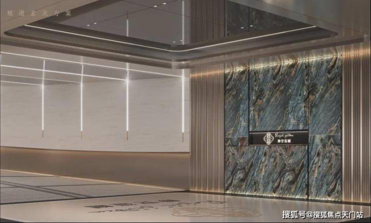 项目车库采用贯穿式鱼尾灯坡道和超耐磨地坪,过道全部采用精装吊顶,地下管道和局部区域进行二次包裹!尤其惊艳的是项目的豪华车马厅,采用水磨石、水晶漆、铝饰面、大板砖、立柱石材包边、门禁系统三合一!