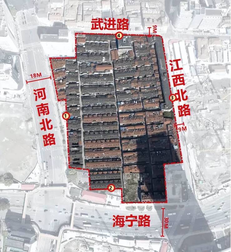 四至范围:东至HK193-02:江西北路,HK300-02:规划公共绿地,南至HK193-02:海宁路,HK300-02:唐山路,西至HK193-02:规划公共绿地,HK300-02:规划公共绿地,北至HK193-02:武进路,HK300-02:东余杭路