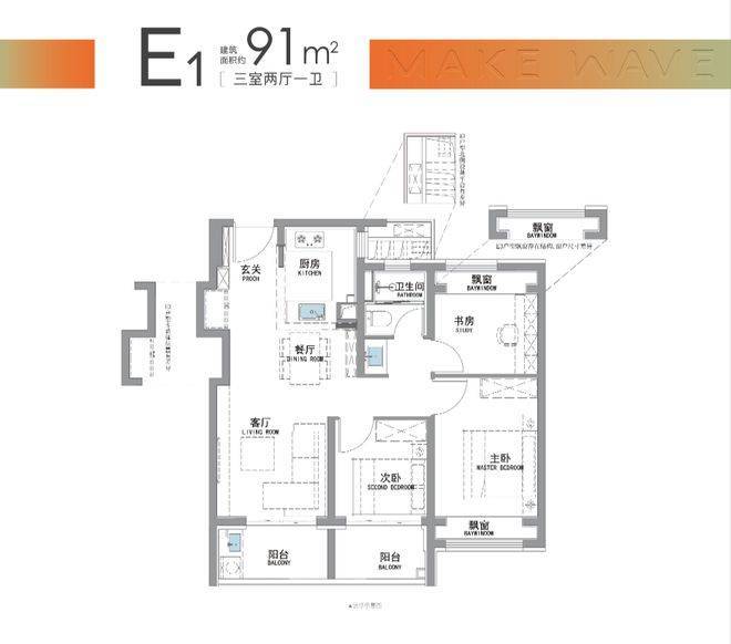 “南向双阳台+南北双飘窗”,构筑真3房户型!