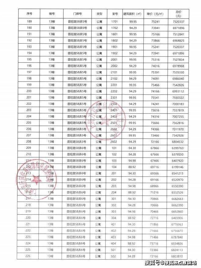 一房一价表