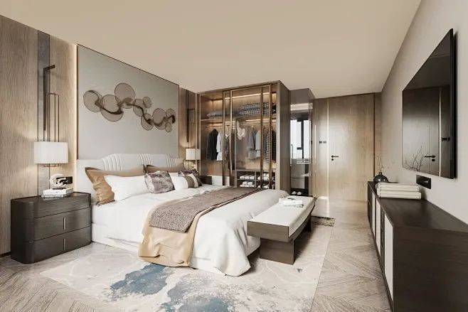 在户型整体格局上,建面约131㎡户型打造 约13m奢阔面宽和约9.3m奢阔阳台 ,让空间拥有超大采光面,生活向阳而生; 全功能套房式主卧 ,集衣帽间、独立卫浴、南向飘窗于一体,赋予主人专属的尊崇私密以及充足的收纳空间。