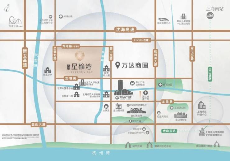 乘临近轨交22号线金山卫站(距离项目4.8公里左右),22号线直达车约35分钟抵达上海南站,站站停约55分钟抵达上海南站。