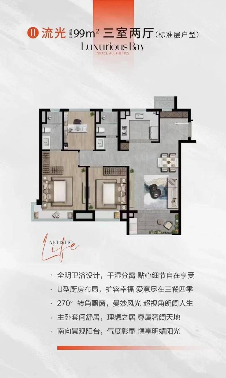 建面约99㎡3房2厅2卫