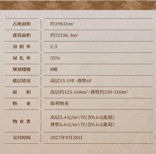 【物业费】:高层5.4元/㎡/月(含0.6元能耗)、叠墅6.6元/㎡/月(含0.6元能耗)