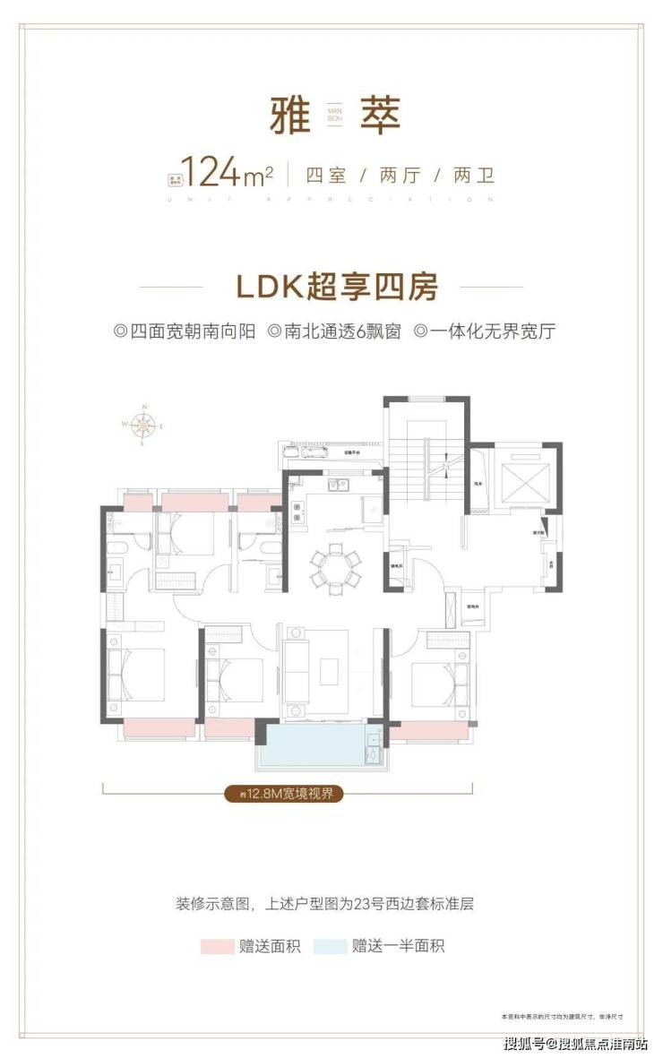 124㎡LDK超享四房:约3.6M阔尺宽厅/约12.8M南向面宽,宽享温暖四季