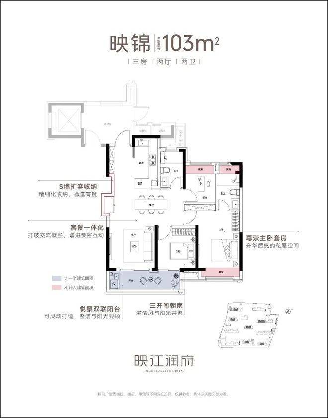 作为华润置地海派3.0作品,映江润府的卷,更在于其硬核的产品力,尤其在户型的设计上,堪称卷到极致。映江润府全盘仅规划89和103两种户型,每个都堪称王炸。