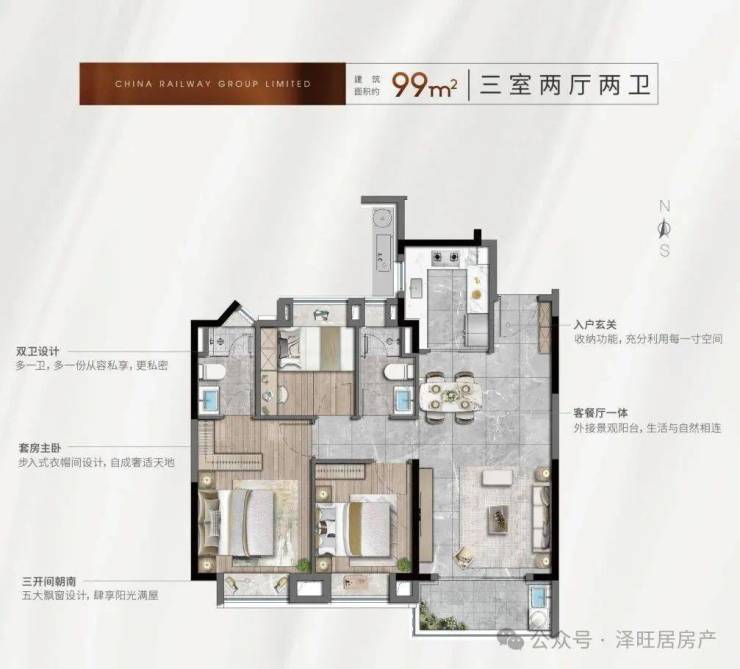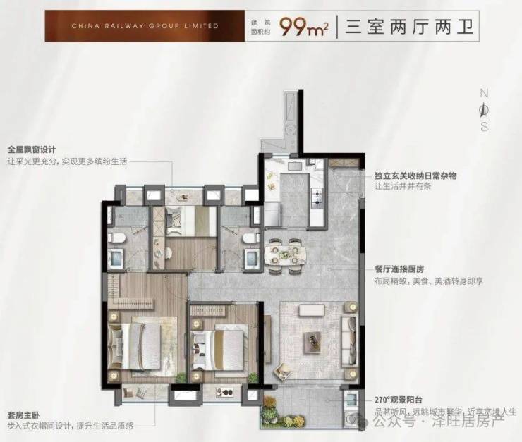 高层99㎡三室两厅两卫245-301万