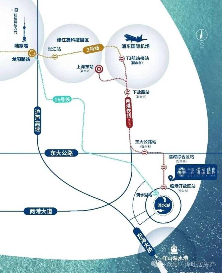 16号线、滴水湖地铁站,东海大道、两港大道、临港大道、S2沪芦高速4线纵横路网,日常通勤迅速畅达。
