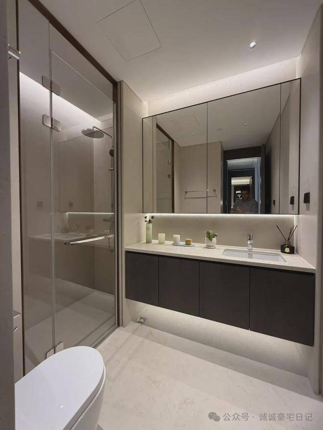 边套户型横厅设计,客厅约5.3米的面宽保证了空间的尺度感,客厅及南侧卧室的大面积落地窗,加上北面大面积飘窗,约270度的采光+视野,保证了室内充足的自然光线。两南一北的卧室布局,尽可能把南向尺度给到卧室,提高居住的舒适性。宽敞的步入式衣帽间,主卫双台盆和宽敞的淋浴区,每一个清晨都是感官的享受,每一个夜晚都是身心的彻底放松。