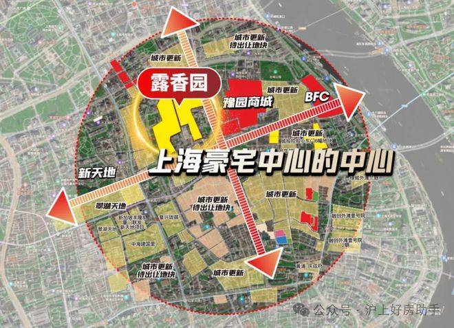 当这些更新项目连成一片,露香园恰好处在 “十字轴心”,是上海豪宅中心的中心。