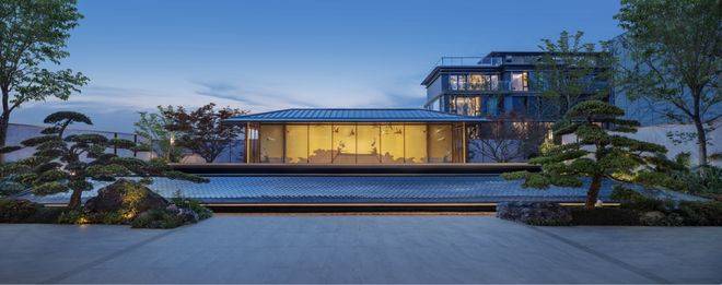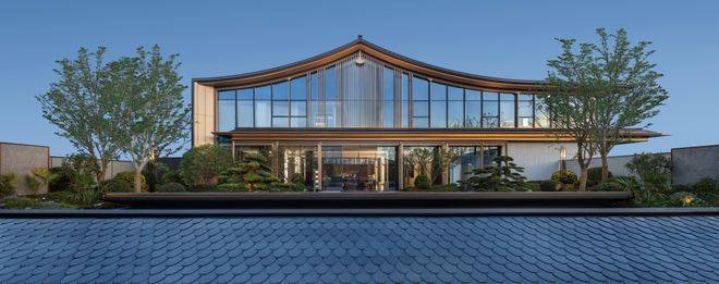 研习《营造法式》之精巧,提取宋朝代表性建筑中的中式重檐屋顶、木作构件元素,甄选铝板、石材、LOW-E玻璃、高档真石漆为主材,辅以金属格栅进行全新演绎,打造简雅秀逸的宋风公建化立面。