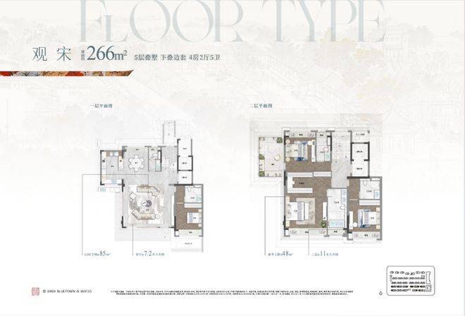 项目主力建面约168-280㎡的精装叠墅以及全精装修大平层,一层一厅、一叠双院、一叠双露台、全系套房、大品牌精装交付。