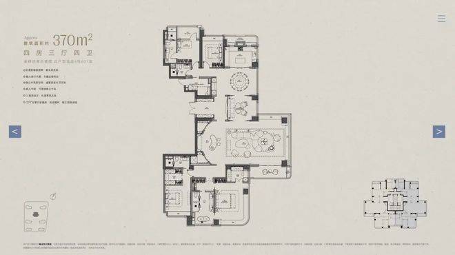 以下为建面约370㎡户型过程稿亮点: