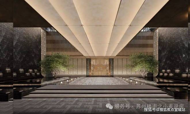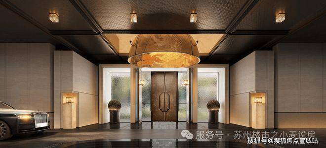 总长约88米、苏州首座大尺度流光造型宝顶及铂金长屏地标门厅;造价约150万、环岛中央非遗盆景