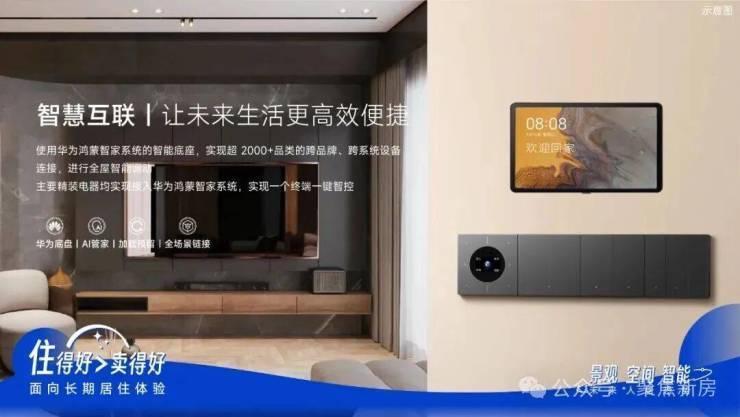 使用华为鸿蒙智家系统的智能底盘,实现超2000+品类的跨品牌、跨系统设备连接,进行全屋智能调动