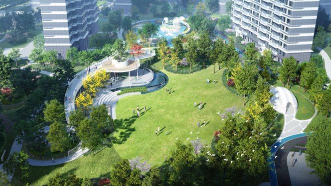 携手集塔景观以超10万方景观绿化打造超大尺度景观园林,通过一环、一厅、双门头、五大功能主题组团的布局 ,构建林下生态宜居公园社区。