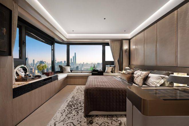 越秀·静安天玥项目142㎡主卧以270°大面宽弧形窗将百年静安与社区园林“双景致”收入囊中,且采用造价高出普通窗体40%的三玻两腔Low-e玻璃,噪音分贝降至28dB以下。当百年静安的光影在窗前流动,城市封面的印记愈加显著。