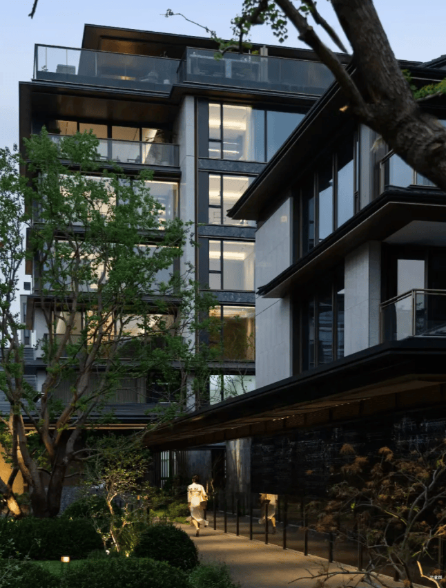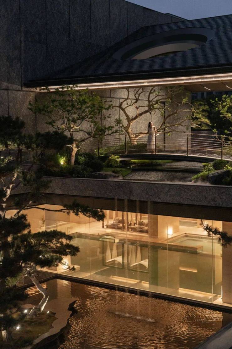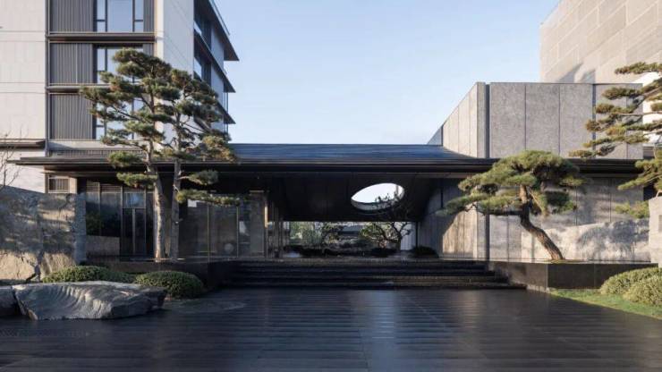 整个建筑外立面更是将现代美学融入。石材+铝板+大面积玻璃的组合,赋予空间前所未有的通透与灵动。就像是一件艺术品,兼具东方韵味和现代质感。