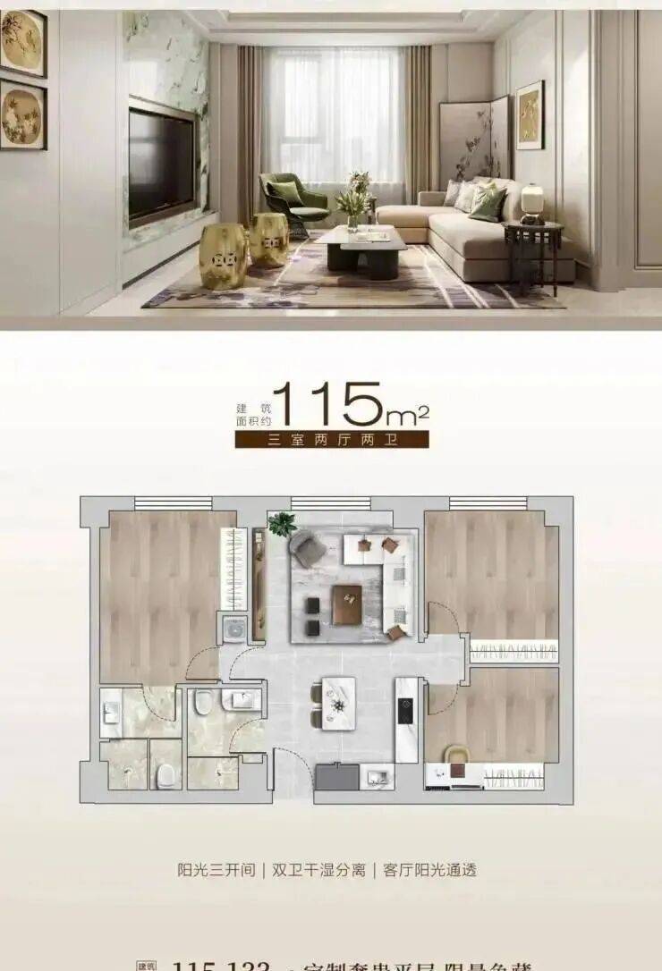 户型面积:115㎡-133㎡(奢装三房,通燃气)