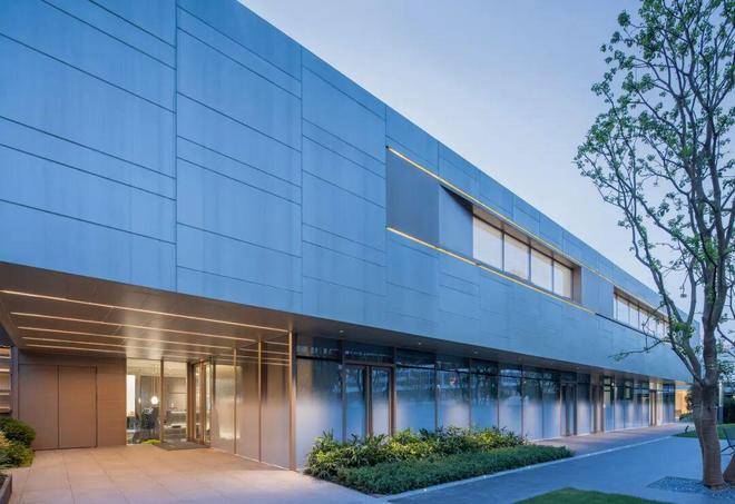 仁恒·溪棠外立面选择用铝板幕墙(铝板+玻璃最高占比80%)立面代替石材,具有高颜值、防水耐蚀的特性。从建筑外形美观来看,由于采用了铝板封闭,在其他建筑中比较突出的空调管、水管外露问题,能得到很好的解决;由于干挂铝板在干挂与墙体有12-20公分的间隔层,几乎减少了外墙渗水可能。饰面层采用了氟碳涂层,油漆选用了国际一线大品牌的产品,抗氧化能力极强,也让建筑体能够历久弥新。