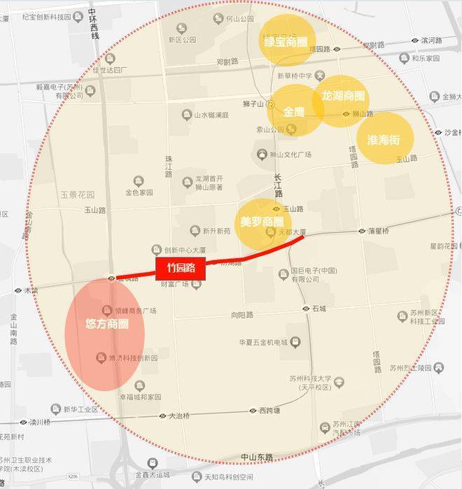 深入研究就会发现,这里的商业配套并不是传统的单一型,而是多个商业组团之间的联动和配合,竹园路西(悠方商圈),竹园路(美罗商圈),狮山绿宝商圈、以及龙湖商圈等,简直就是商业综合体天团。