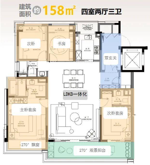 公区LDKB一体化设计,外接跑道式阳台,生活场景更丰富;