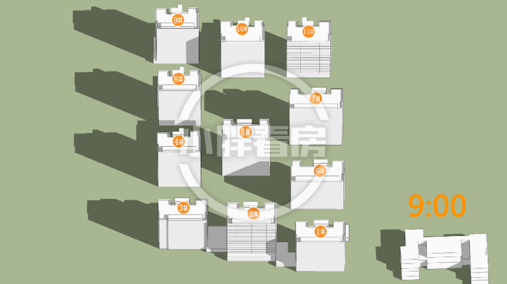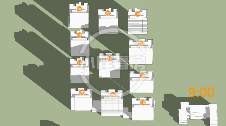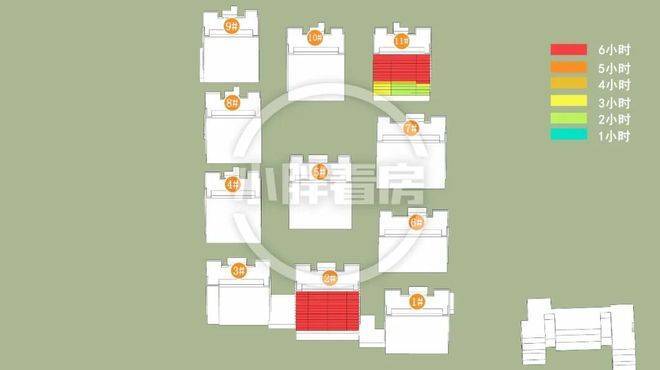 冬季:2#采光优异几乎不存在遮挡。11#低层受遮挡。就具体遮挡时间而言,11#除早晨和傍晚外其余时间段均受遮挡。