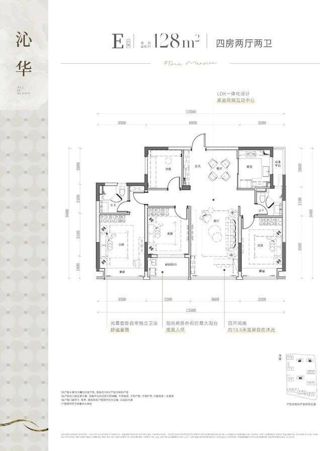 建面约128方四房两卫户型