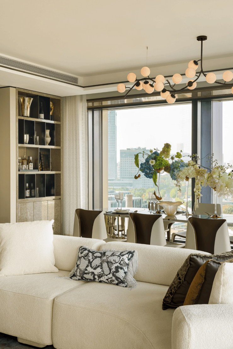 它不仅是地理意义上的“首席”,更从设计之初即被定位为“高定艺术楼座”,由SCDA曾仕乾、LSD葛亚曦、CICADA诗加达等全球大师联袂执笔,从建筑立面、园林景观到室内空间,围绕“静谧与光辉”的设计理念,实现全维度的统一高定,每一寸空间都承载着对“江居最高形态”的探索。