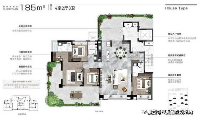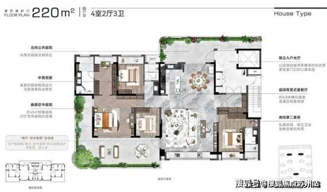 苏州蠡棠森屿售楼处电话☎:400-9016-520(售楼处预约看房热线)南向L型空中庭院巧妙衔接卧室,打造“厅卧同质”空间,赋予主卧更多功能性;同时,前庭后院布局,北向特赠超大公共平台,预留出无限可能的生长空间,为未来生活注入丰富多样性与不断涌现的新奇体验。