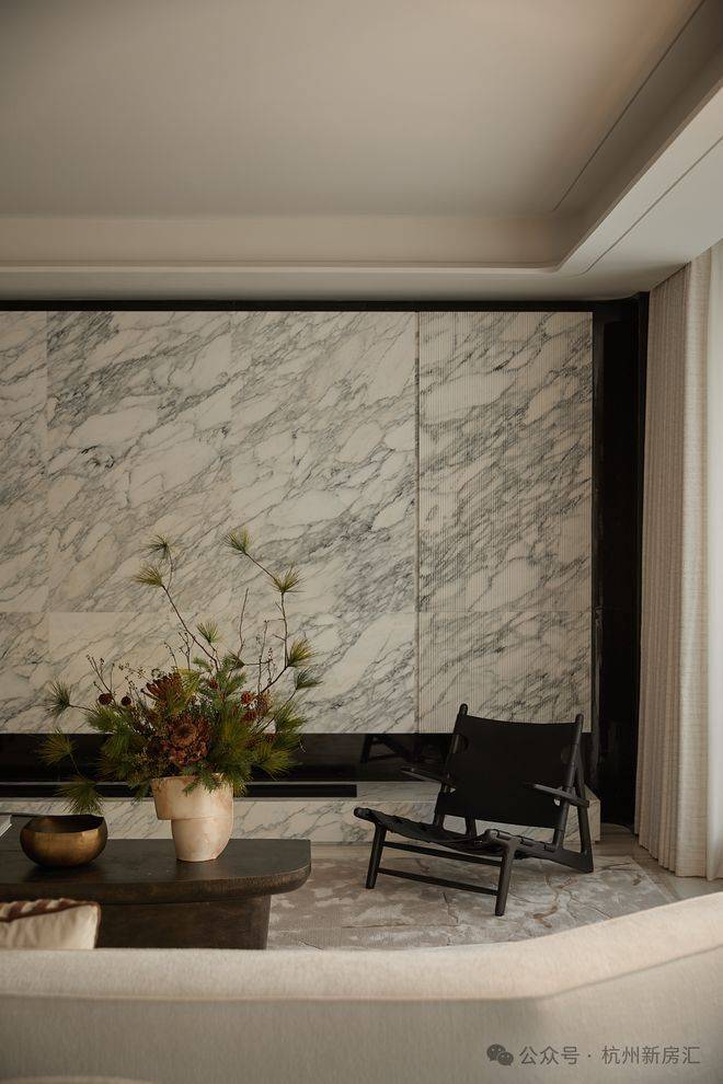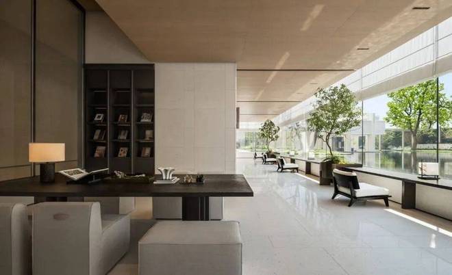 从建筑立面开始,安璞便展现出高超的审美追求:铝板、陶砖和石材巧妙融合,既保持现代线条的轻盈感,又借助陶材的温润光泽与石材的沉稳质感,构建出富有层次的艺术表达。