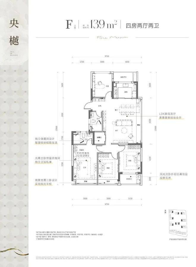 建面约139方户型效果展示间视频: