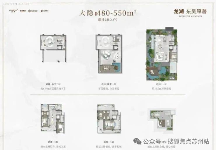 敬献建面约480-550m²联排、225-325m²叠墅