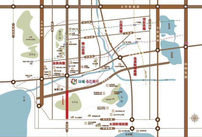 交通——长江路隧道穿越七子山及吴中大道后,通过旺山路与太湖隧道相连;项目紧邻苏福快速路与中环西线,便捷通达全城,近享地铁3号线,5号线,打造全方位多维交通体系,城心社交主场与理想生活主场自由切换。