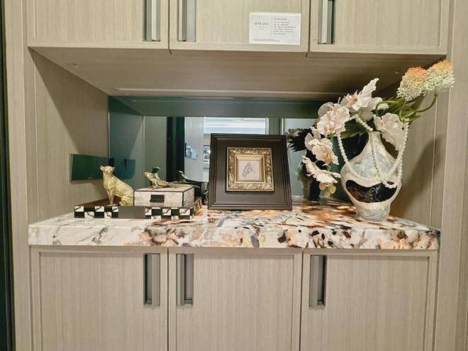 玄关柜台面,选用了雪山飞狐奢石