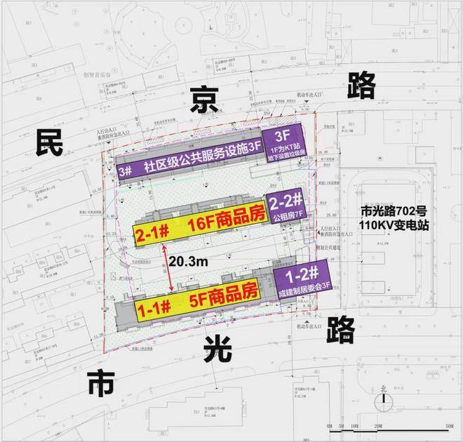 项目四至范围:东至002-06地块、南至市光路、西至居民小区、北至民京路。项目总用地面积约7458.94平方米,容积率2.3,计容面积约17155.56平方米。