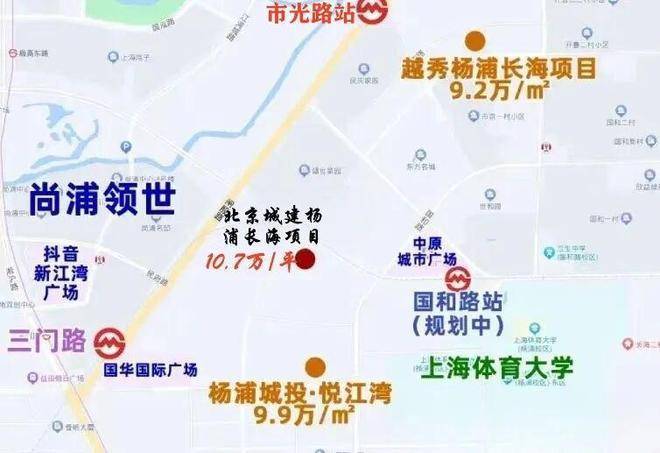 地块位于长海路街道,临近江湾-五角场主城副中心,居住氛围较好,基础设施及公共配套较齐全。距离8号线市光路站直线约800米