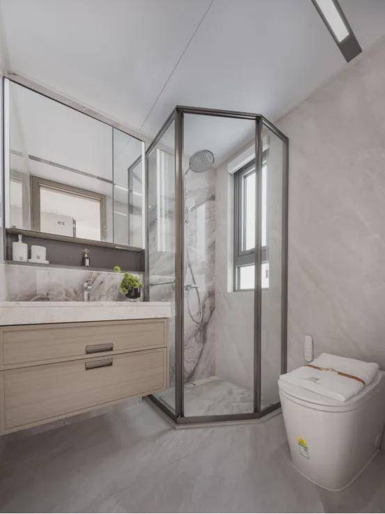 主卫配置魔镜,双面高清镜面,内含美妆冰箱的镜柜及卫浴柜,恒温冷藏。