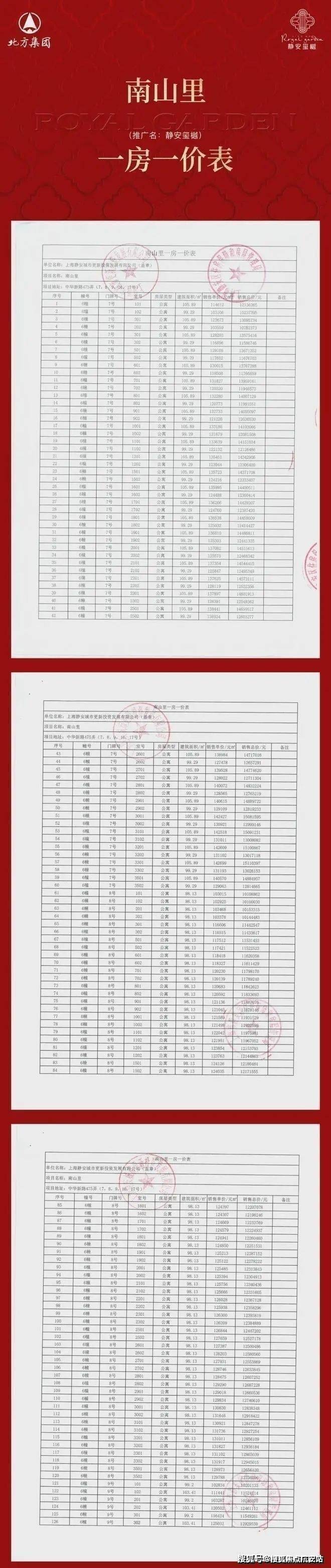 一房一价表:
